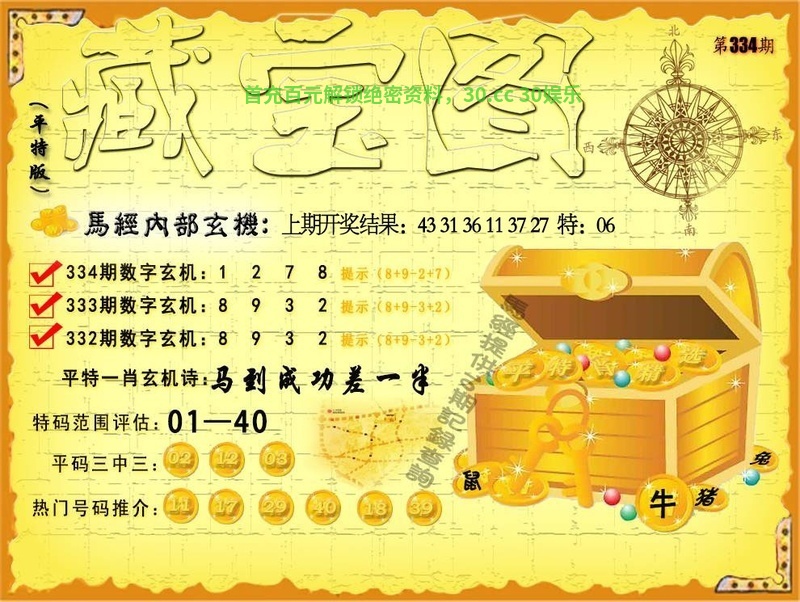 331期平特藏宝图解析【牛龙蛇狗定中奖】